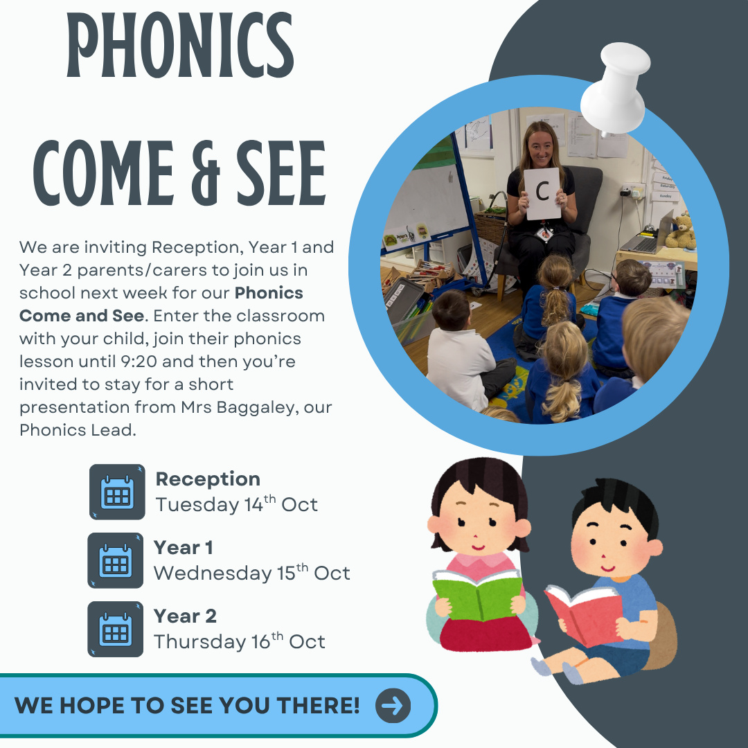 Next Week: RWI Phonics Come and See for Reception - Year 2 Parents