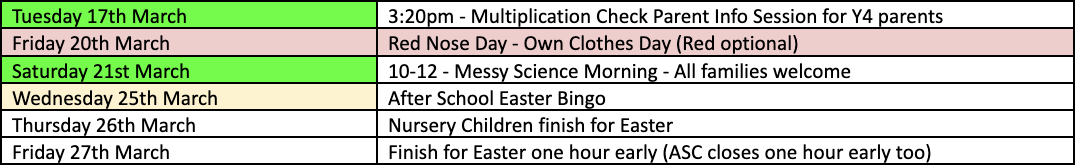 Our Spring Term Homework Projects came home on Friday and they were also sent out via ParentApp. They can also be found at the end of this blog. These are optional projects to celebrate the children's learning over this term. Due to the short half term, the deadline for these projects is the first Wednesday back after the Easter holidays.